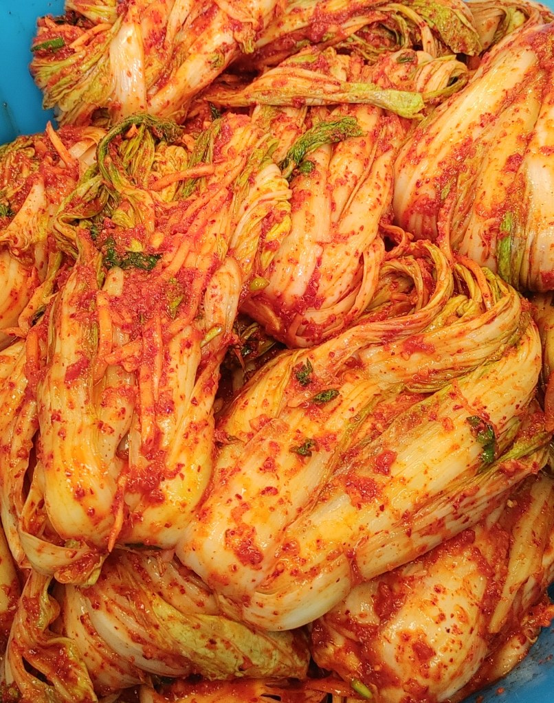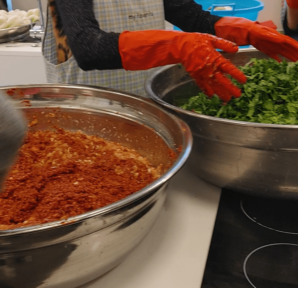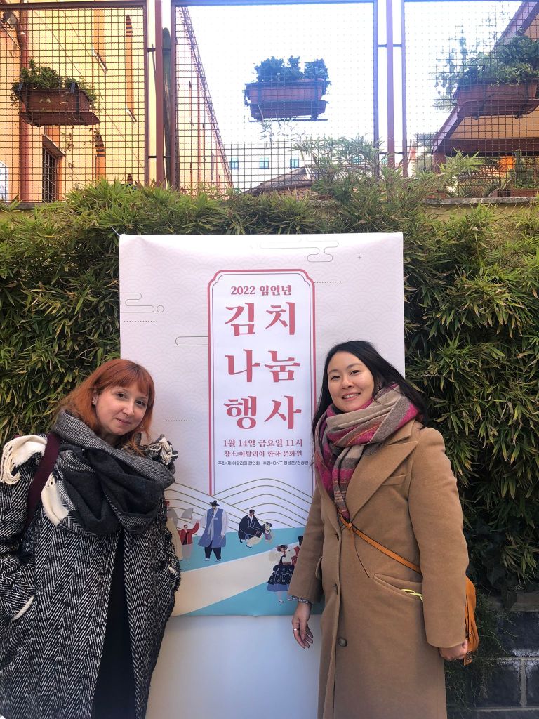 Quando sono arrivata all’istituto culturale coreano di Roma che ha ospitato l’ACI (Associazione Coreani in Italia) per l’evento organizzato dal presidente Yoo Kyunghun, con l’aiuto della comunità coreana di Roma, sono stata inondata dal profumo intenso e speziato del condimento con cui centinaia di cavoli già sottoposti alla salamoia sarebbero stati ora conditi e messi a disposizione della comunità coreana e degli studenti coreani a Roma che per sentirsi un può più vicini ai sapori di casa potevano andare a prendere il proprio contenitore di Kimchi all’evento.