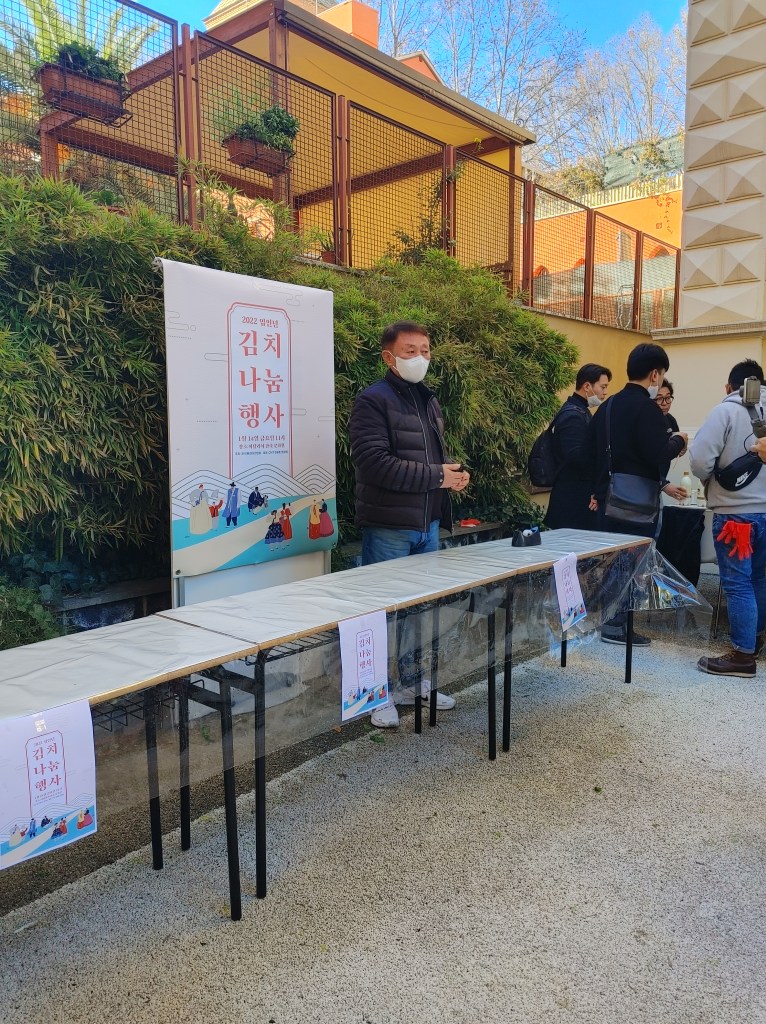 Parlare con il presidente Yoo Kyunghun e con alcuni membri della comunità coreana di Roma è stato prezioso per riuscire ad afferrare un minimo del sentimento che muove questa tradizione, raccontata anche con un po’ di nostalgia. Non è stato difficile immaginare un tempo lontano sentendoli parlare di come una volta questa pratica era necessità, essendo la vita prettamente rurale e necessitando di metodi di conservazione dei cibi, la fermentazione all’interno degli 항아리 (hangari, le grandi giare di terracotta che spesso si vedono ancora nei cortili delle case e che servivano per conservare vari tipi alimenti, dal kimchi al gochujang, alla salsa di soia e altro ancora) era un grande aiuto per la conservazione a lungo termine. Questa necessità negli anni è diventata, come spesso accade, tradizione e un modo per riunirsi e portare avanti qualcosa che ci identifica.